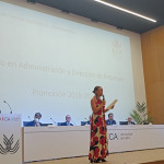 En primer lugar, tomó la palabra D.ª Mariluz Fernández Alles, en representación de los estudiantes de la promoción, seguido por D. Manuel Larrán Jorge como padrino de la promoción.
