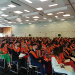 Los asistentes al acto de graduación, entre los que estaba el Decano de Colegio de Economistas de Cádiz, D. Javier Cabeza de Vaca, miembros de la comunidad universitaria, egresados y familiares llenaron el Aula Magna de la Facultad de Ciencias Económicas y Empresariales.