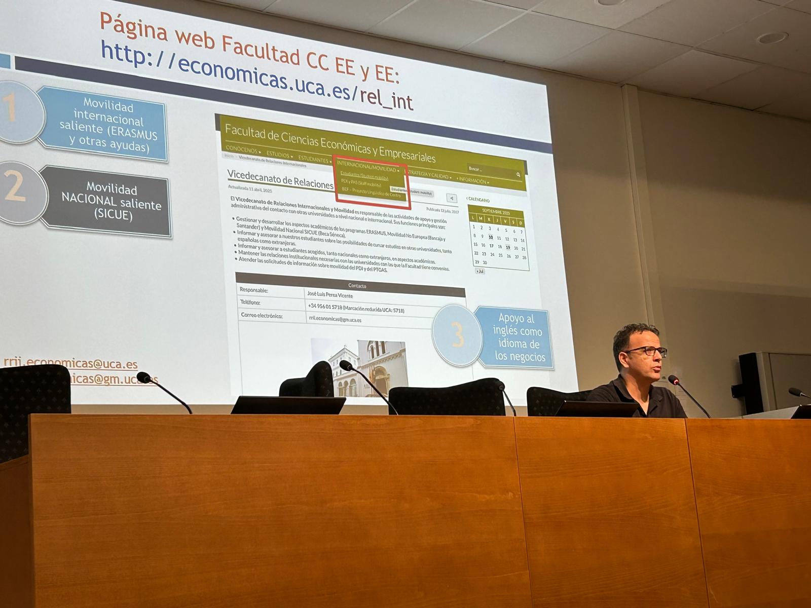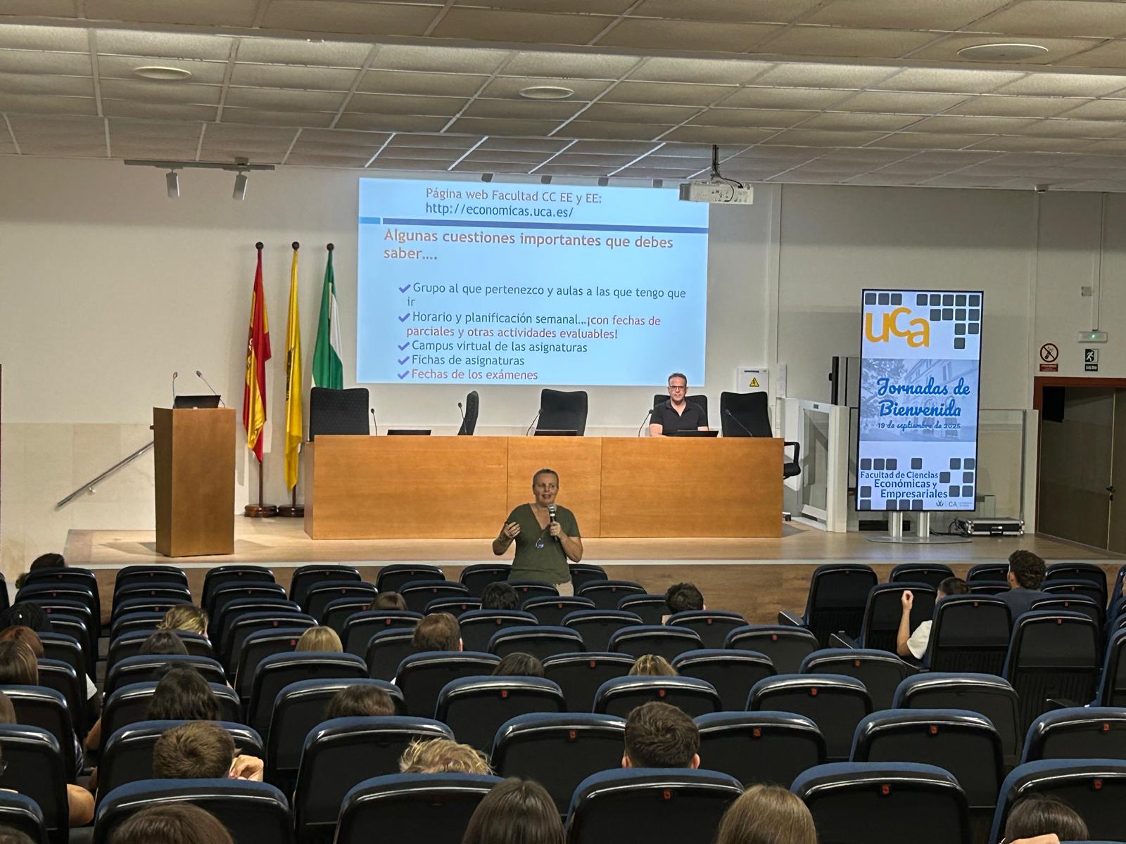 El viernes 19 de septiembre de 2025 se celebraron los actos de bienvenida a todo el alumnado que este año ingresa en algunas de nuestras titulaciones de Grado y Dobles-Grados. En concreto se realizaron actos en las 3 sedes de la Facultad de Ciencias Económicas y Empresariales (Cádiz, Jerez y Algeciras) para dar la bienvenida al alumnado. El programa de actos completo puede verse en el siguiente enlace: Jornadas de Bienvenida 2025.